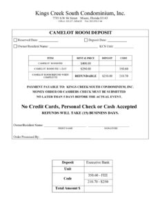 KCS – Camelot Deposit and Refund Form