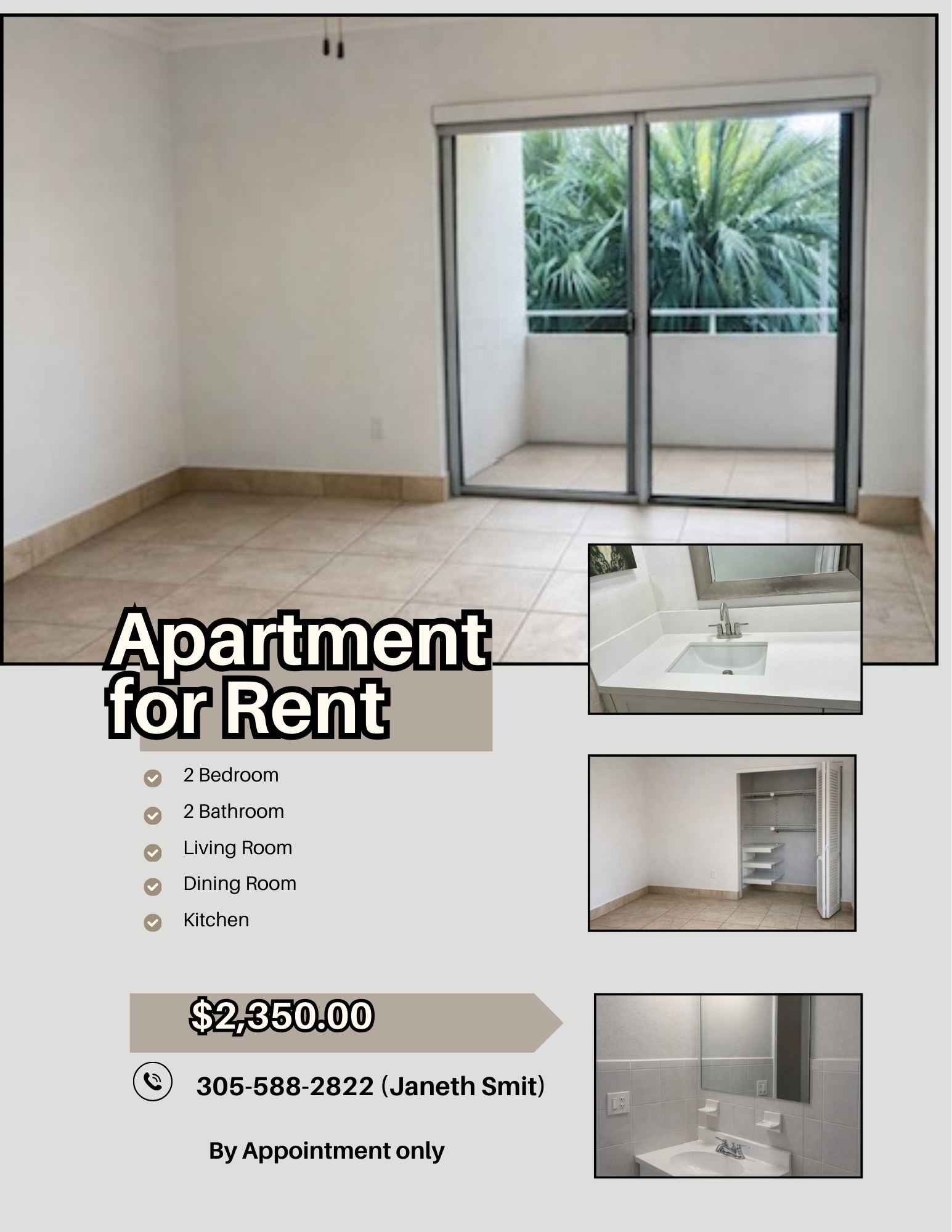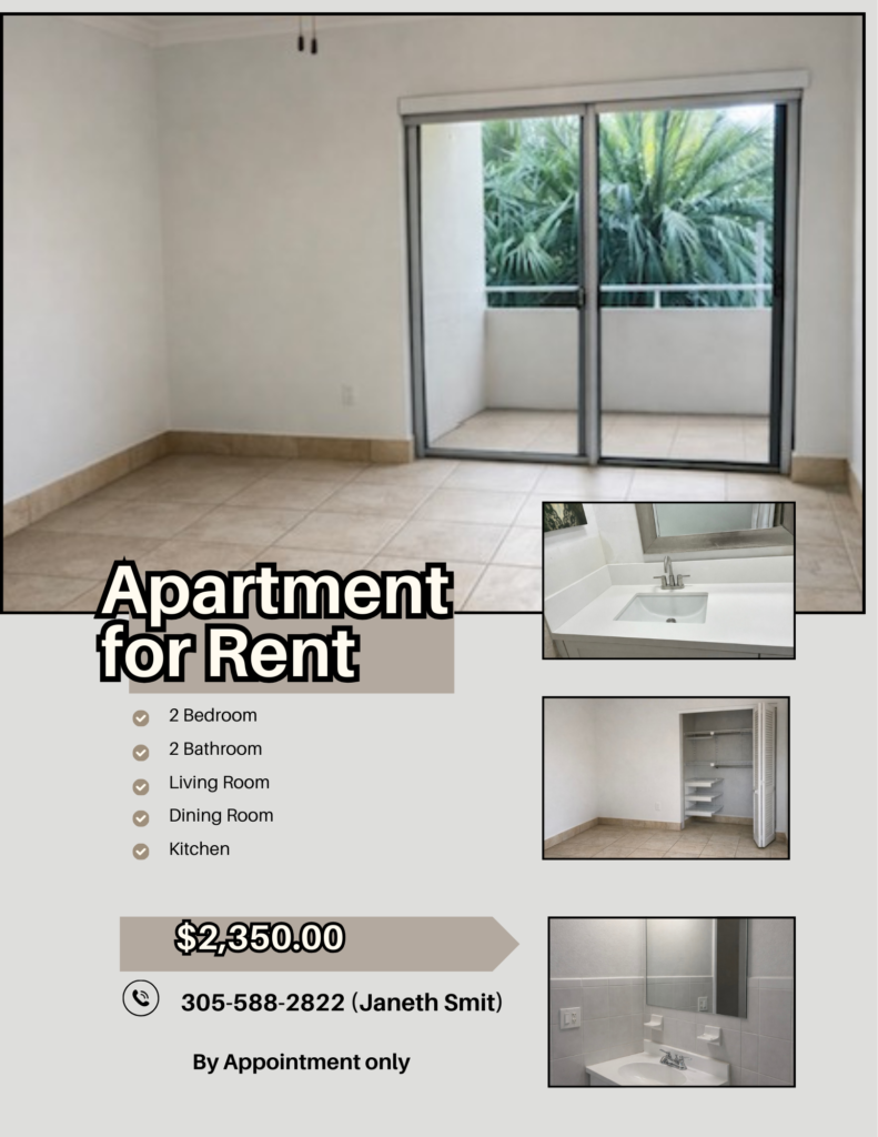 FOR RENT 2/2 2 Bedroom, 2 Bathrooms, 4th floor unit in the D Building New kitchen, new lighting, all new appliances, newly painted for the perfect occupant! $2,500Please call Alba at 617-413-4433